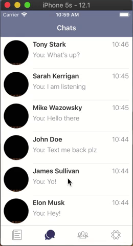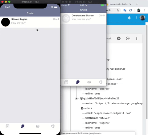 Simple chatting. New message raises chat to the top of the list, even if it's from user you have no chat with. Delivery status implemented.