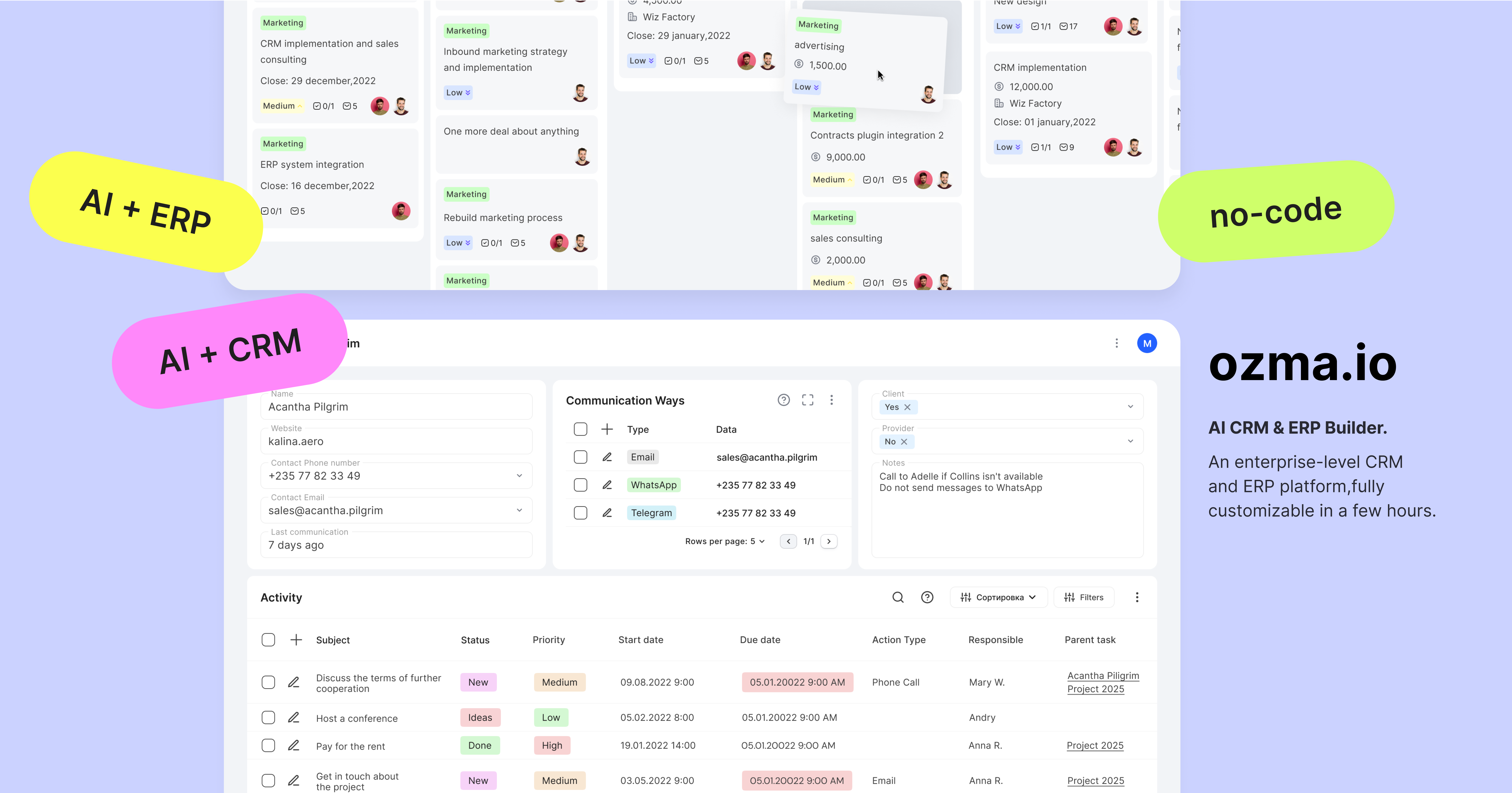 Ozma is an open-source CRM/ERP platform that allows for rapidly developing customizable enterprise systems.