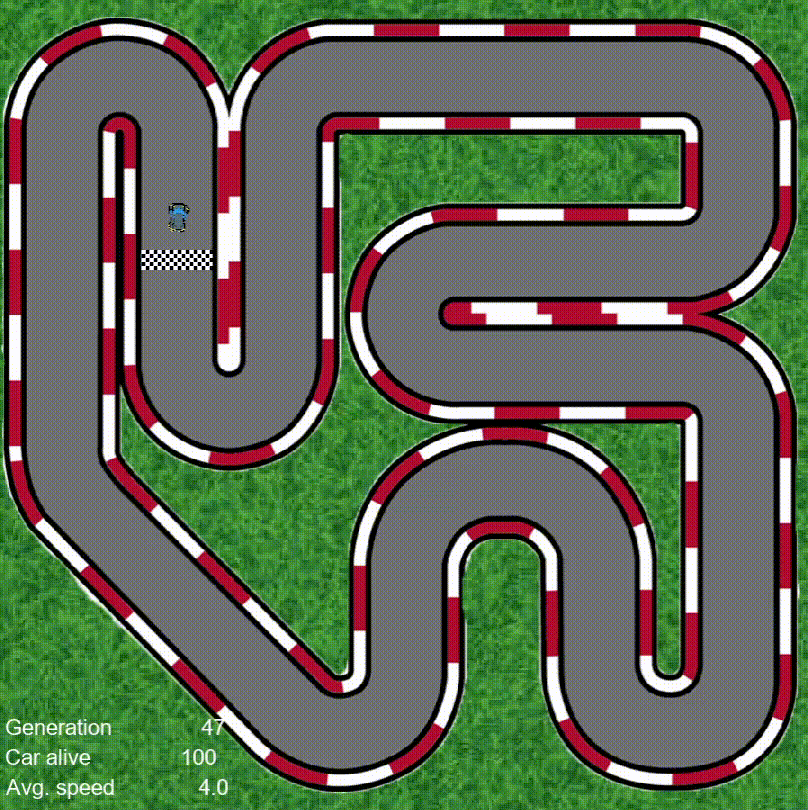 I achieved to make these AI drive fast without collision (for 10 laps in my tests), to be more specific they were able to make relevant decisions to reach the goal, the goal is to get as far as possible from the start position so they naturally learn to survive from collisions, they can also learn different trajectories optimization.