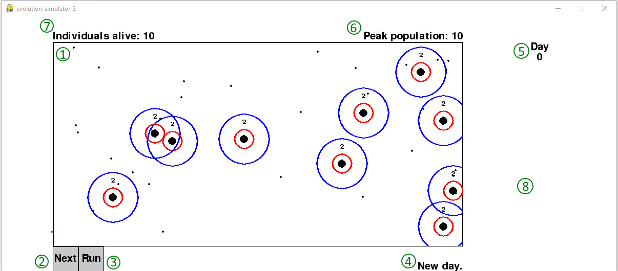 7: Number of Individuals Alive Counter - this simply displays the current amount of Individuals that are alive.