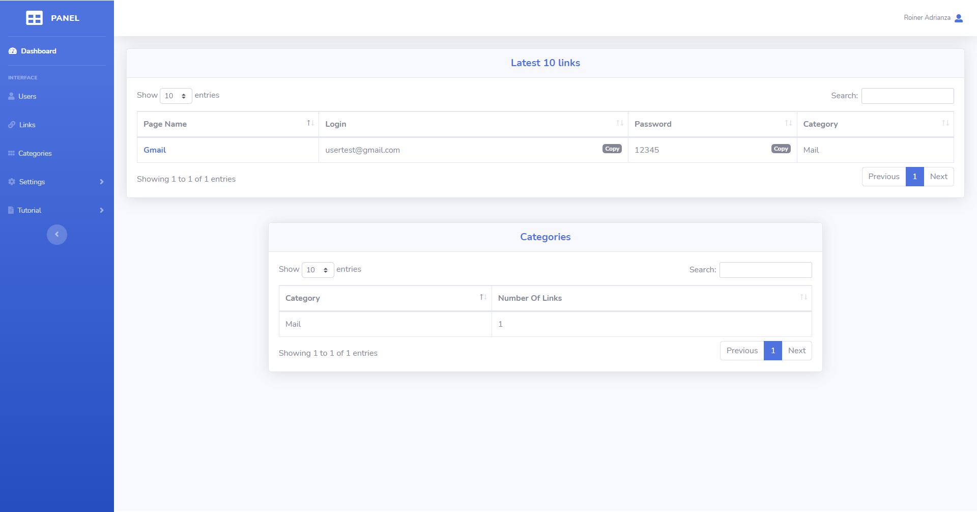 - Los usuarios/contraseñas de cada credencial son encriptados y desencriptados para ser sólo visualizados por el usuario a las que le pertenece.