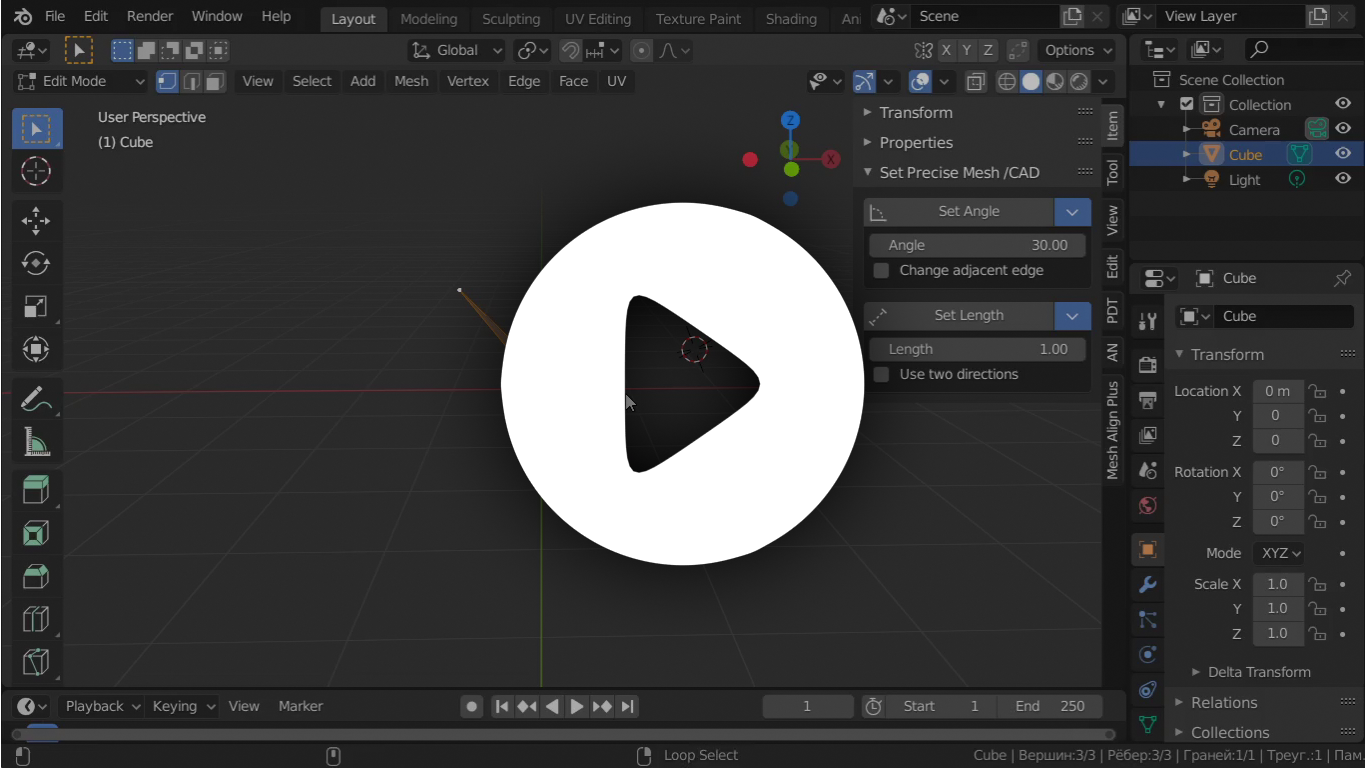 - Set Length – set the exact length of the edge or length between selected elements(vertices/edges/faces).