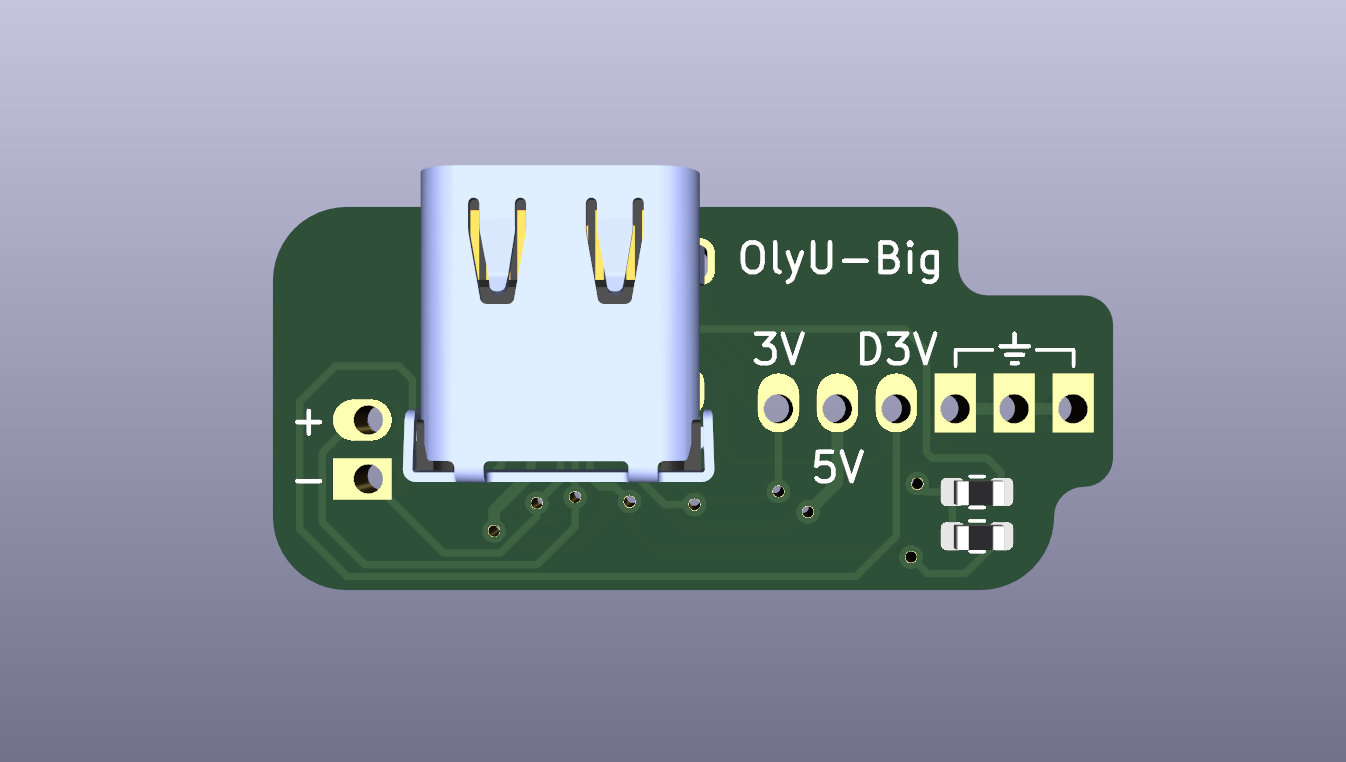 The OlyU Small version is designed to be installed so that the USB-C port is sandwiched between the main pcb and the OlyU pcb. This way, you can use 2mm pin headers for the installation. It has also been reshaped to perfectly fit with the Removable Gate GCC's shell design (https://github.com/sean44104/Removable-Gate-GCC). Use this version if you are working with custom resin printed shell designs, or if you just want a smaller and more sleak experience!