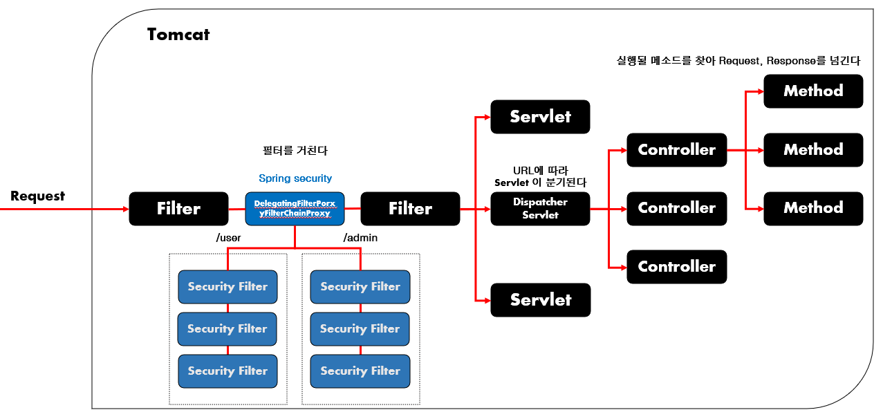 위의 Tomcat 흐름 그림에서 Spring Security가 추가되면?!