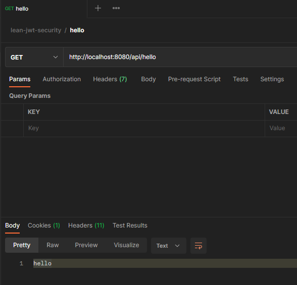 }이 상태에서 main 을 실행하고, /api/hello 를 요청하면 401 unauthorized 오류가 뜬다.