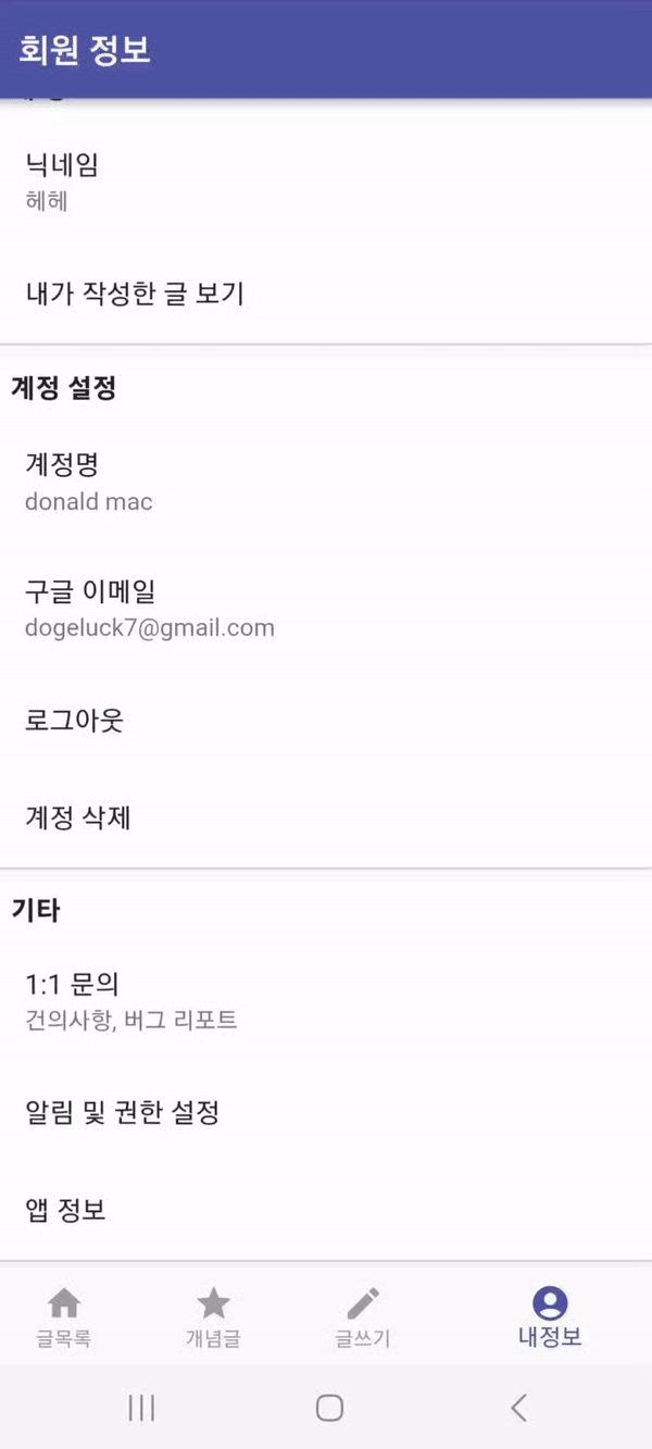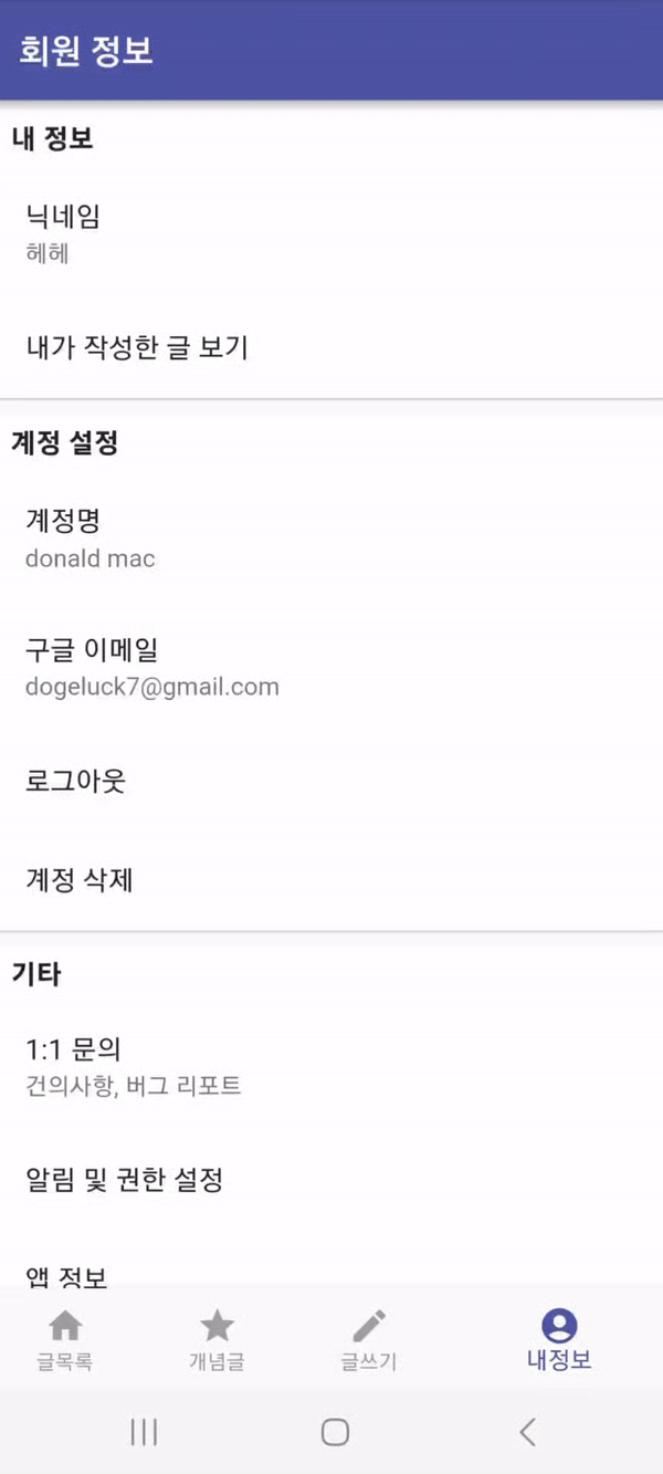 - 계정 관리 / 앱 정보
