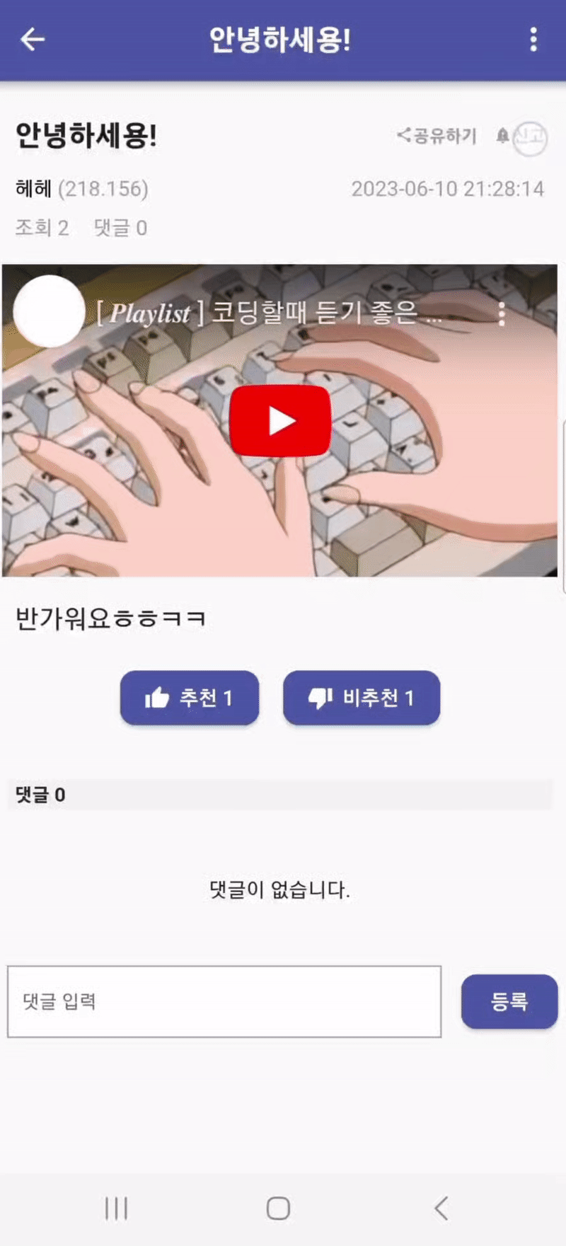 - 게시글 [유튜브 추천영상 및 검색] 추가