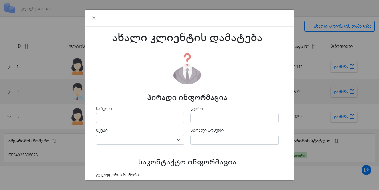 Client database built with Angular, implementing CRUD services with the help of JSON Server and authentication services using Firebase.