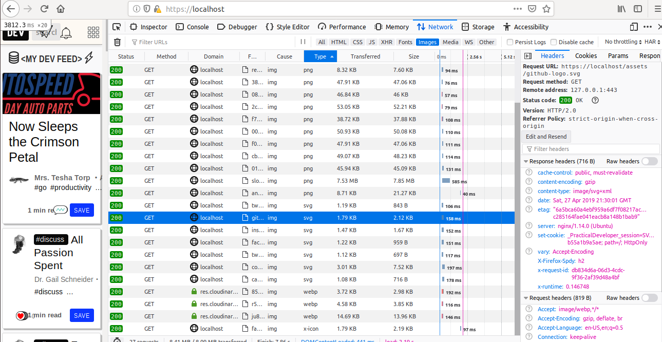 node_modules/.bin/http2-push-detect https://dev.to- ничего не показало.Имеет смысл на проде dev.to использовать server-push хотя бы для тех же svg файлов. К примеру, lightning.svg требует около 600ms.