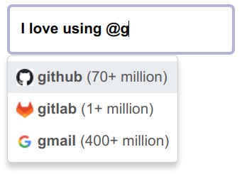 })();User mentions/suggestions triggered by @query (the start delimiter is "@").