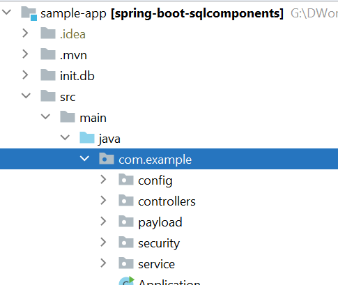 better describe the package name as com.sqlcomponents.samples.spring etc..