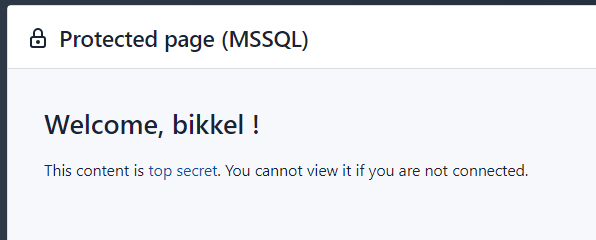 User authentication demoThis example demonstrates how to handle user authentication with SQLpage. MSSQL versionIt is based on the original PostgreSQL database example, but now modified to be used with MSSQL. All the user and password management is done in SQLPage, Take note that the database is a little bit different: This demonstrates how to implement: