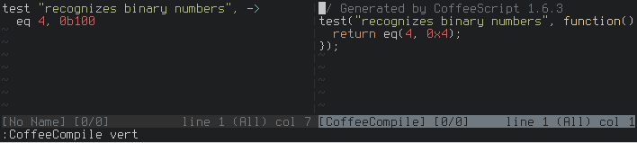 After a source buffer is watched, leaving insert mode or saving the file fires off a recompile of the CoffeeScript:
