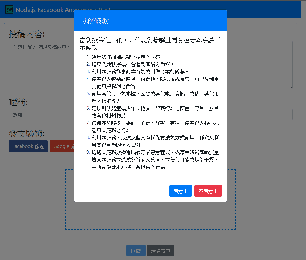 Simple Facebook anonymous post to fan page timeline system, Fast to submit user post content, And using Firebase authentication to identify.