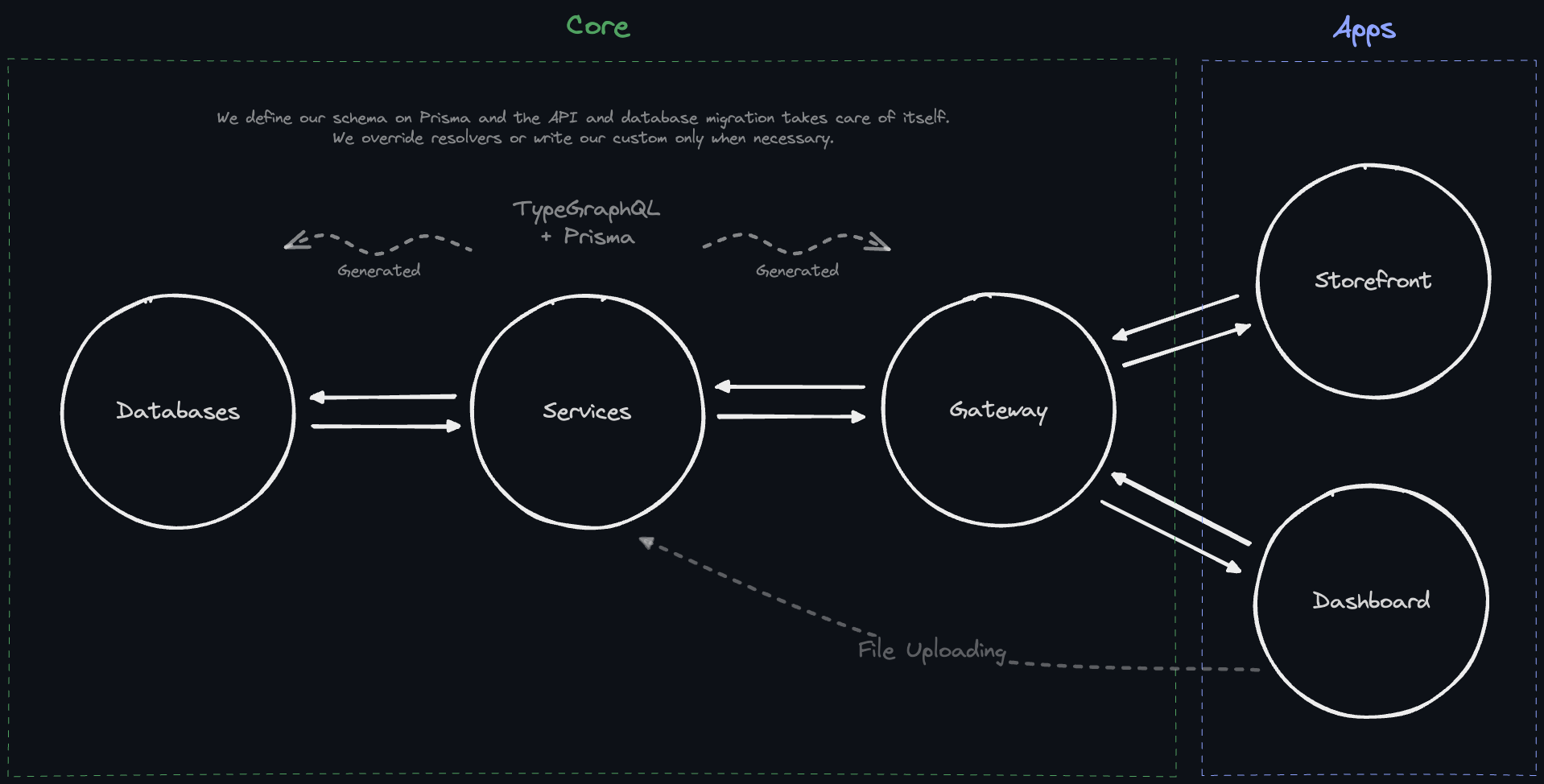 Storedge's architecture is divided into core and apps layers: