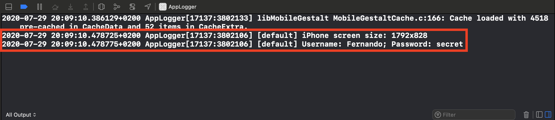 logger.log("Username: \(username); Password: \(password)", isPrivate: true)public struct Defaults {