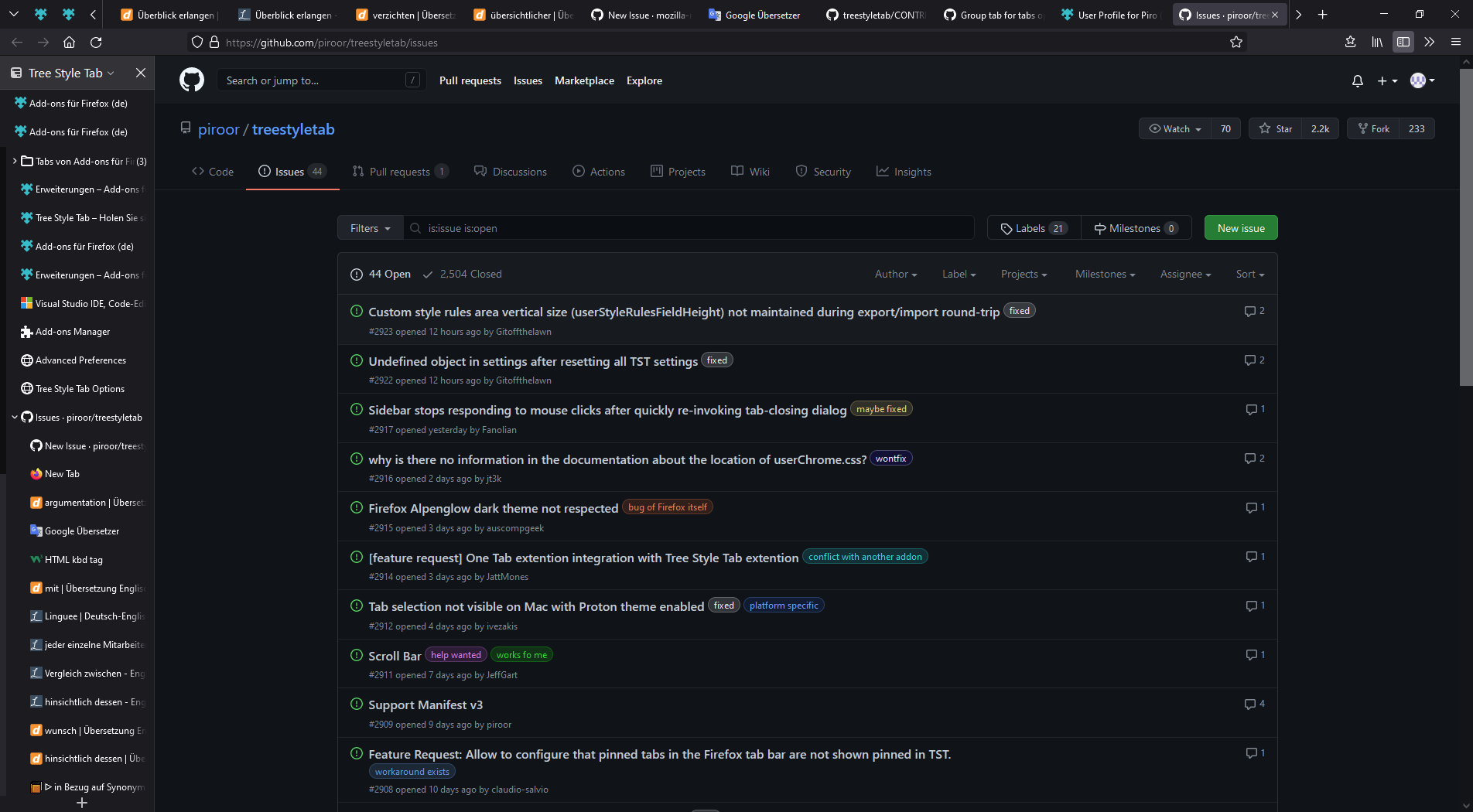 - Version (or revision) of Tree Style Tab: 3.8.1