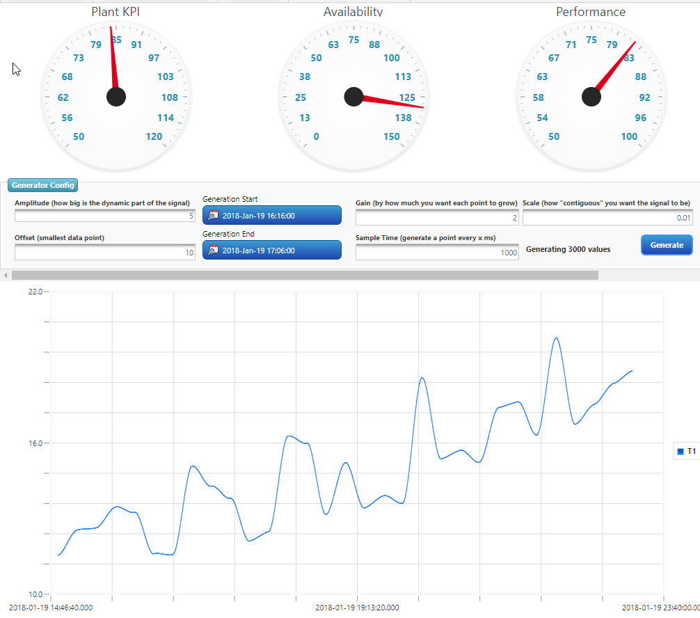 getNoiseserviceSignalGeneratorthing. This service returns a infotable with your data. This are the required parameters:scale: how "contiguous" you want the signal to beamplitude: how big is the dynamic part of the signaladditiveGradient: Gain, or by how much you want each point to growoffset: offset the signal from 0 (smallest data point)intervalStartandintervalEnd: the generated signal will sit between this two datessampleTime: in ms, how often should the signal change