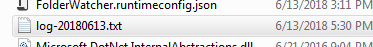 appsettings.jsonfile to configure thePathandFilterparameters.Pathis the path to be monitoredFilteris the filter string. Only files matching the filter string will have activity reported. - Open the command line and execute