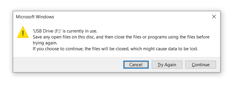 I have add the Folder Watch to USB Drive. but when i am trying to Eject the USB i am getting USB Drive is currently in use. Can you please help me out with this