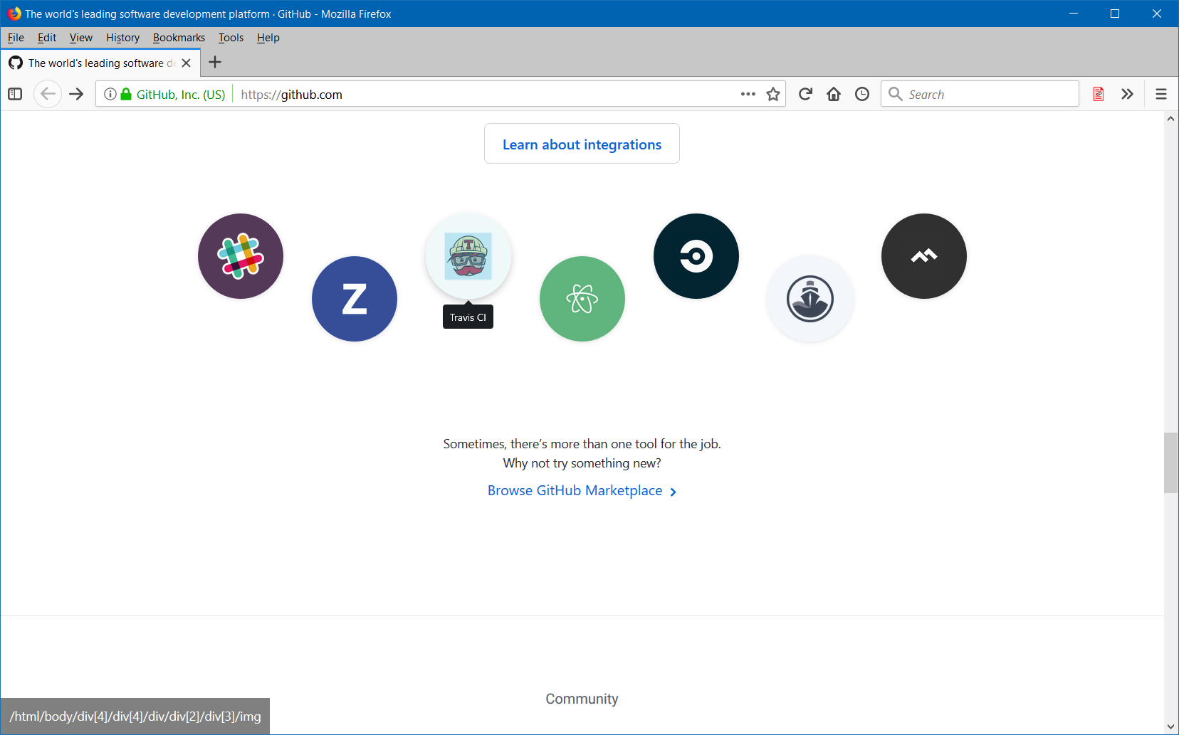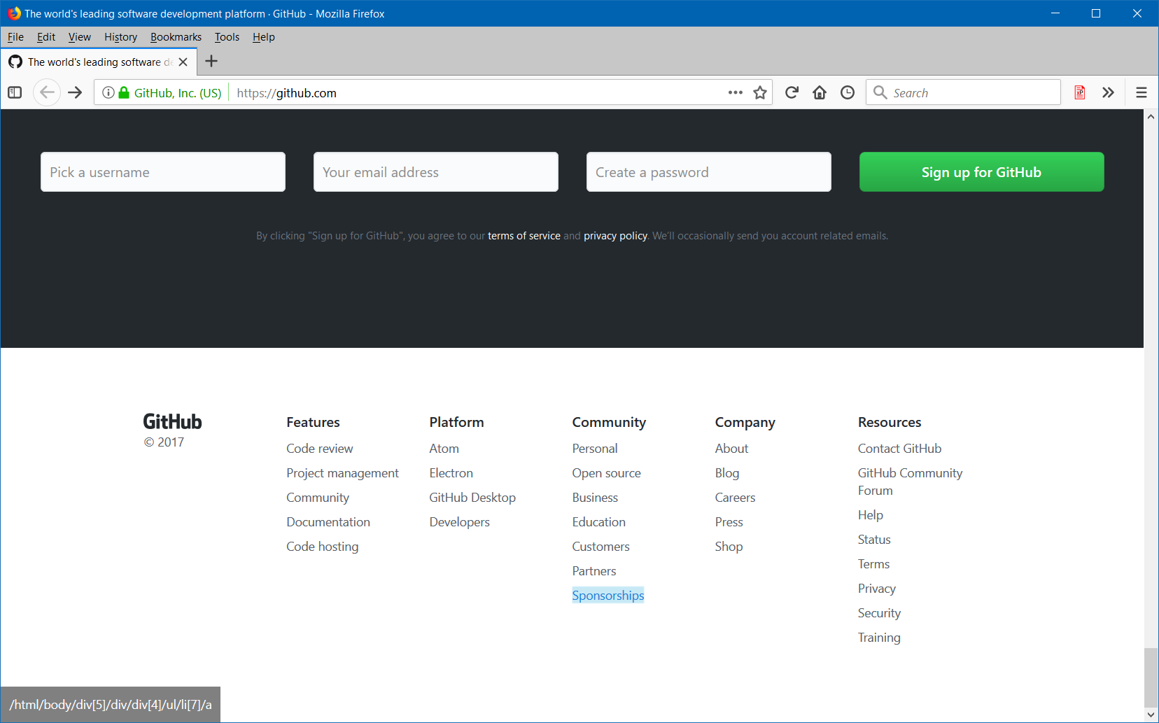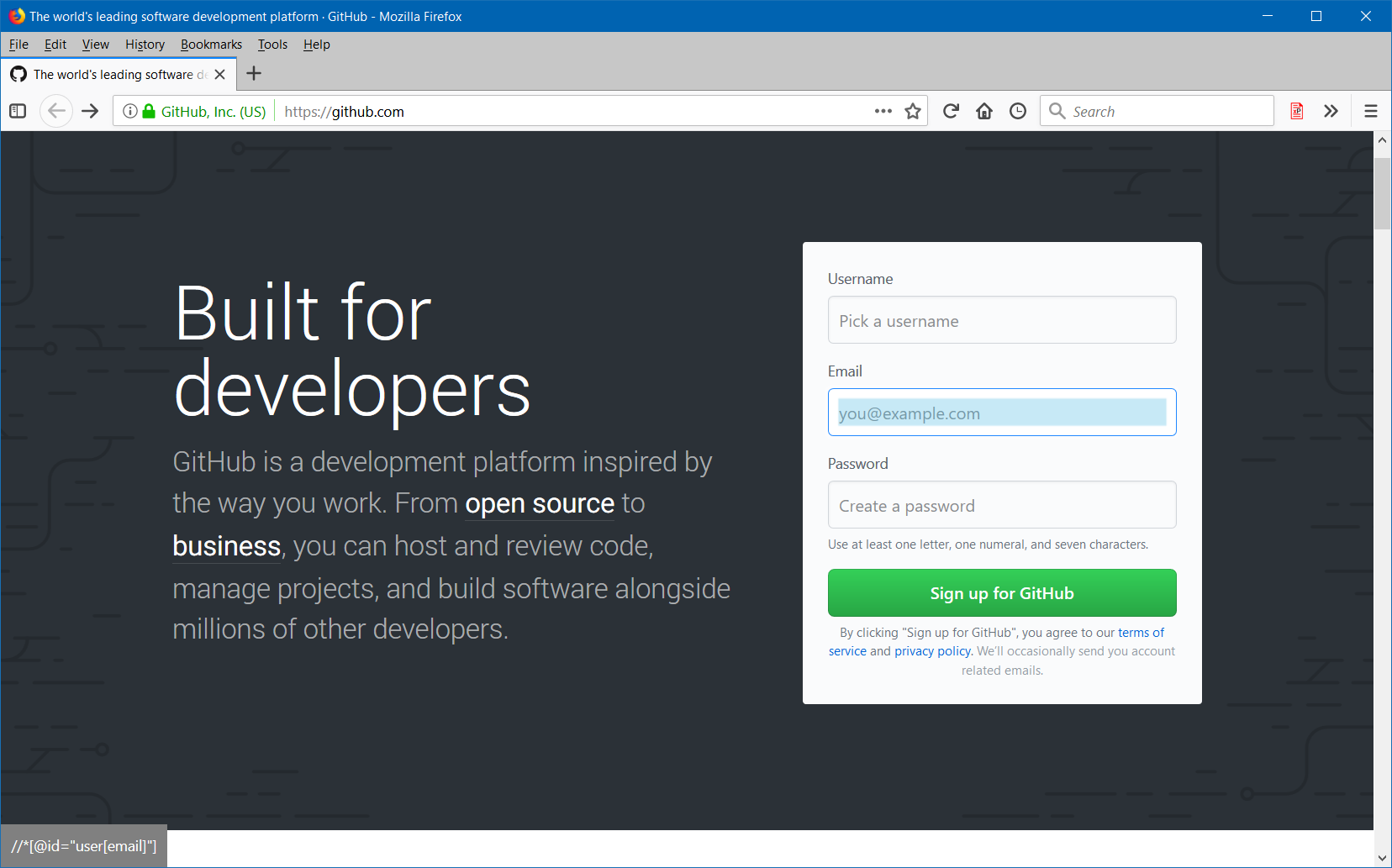 - Click on the element and his xPath will display in the panel at the bottom of the page