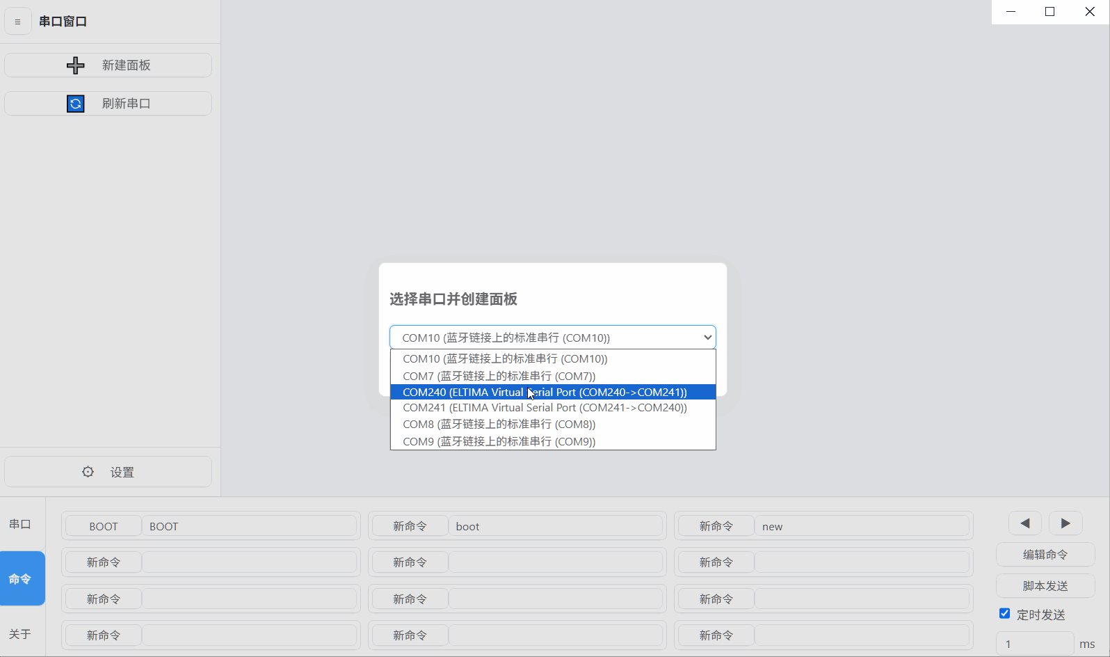 - 为弹出的串口面板添加了发送框
