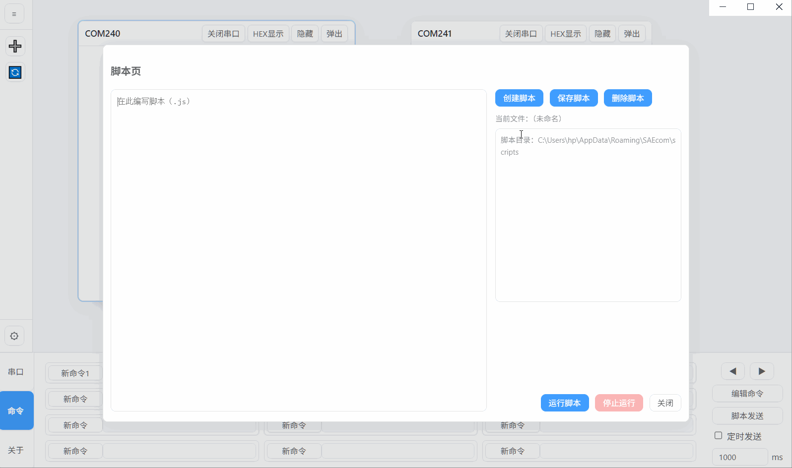- 用户可自定义js脚本控制串口数据发送