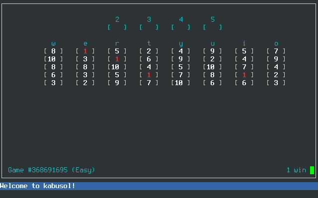 - 2,3,4,5: select one of the free cells