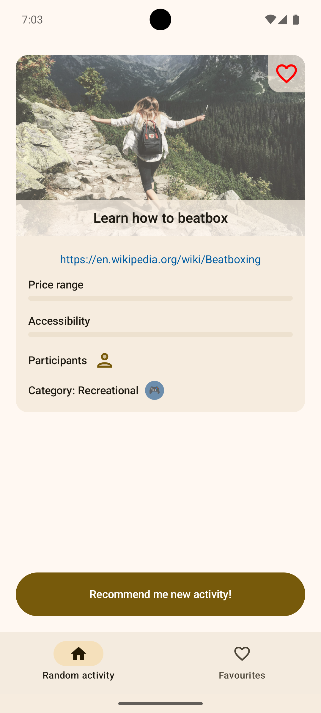bored-android An Android application to recommend activities for bored users Screenshots Credits This app uses the Bored API