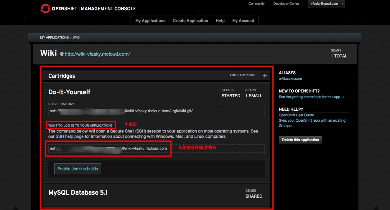 访问 https://openshift.redhat.com/app/console/applications/wiki