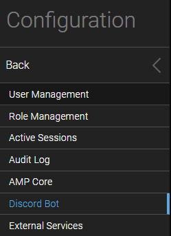 ampinstmgr restart [INSTANCE NAME] - Log in to your instance and you will see a new menu item under Configuration for the Discord Bot
