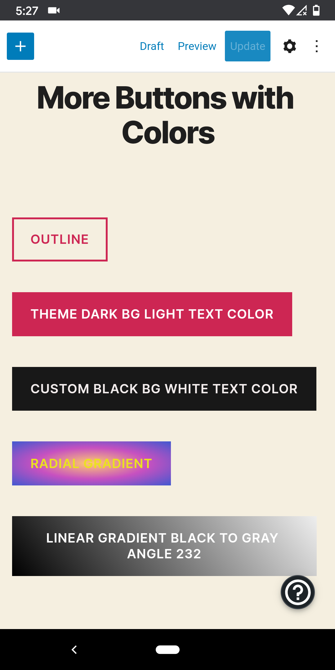 - In the app, open the post in the editor and check to see if the button colors are rendered.