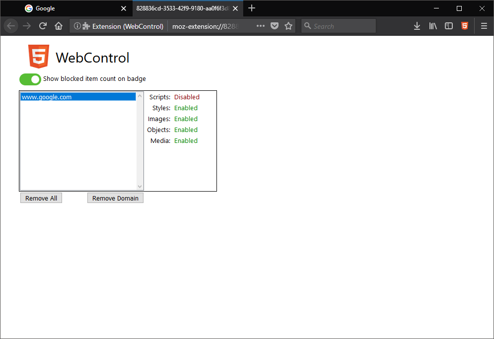 A Firefox WebExtension to blacklist domains from running scripts, videos, and more.