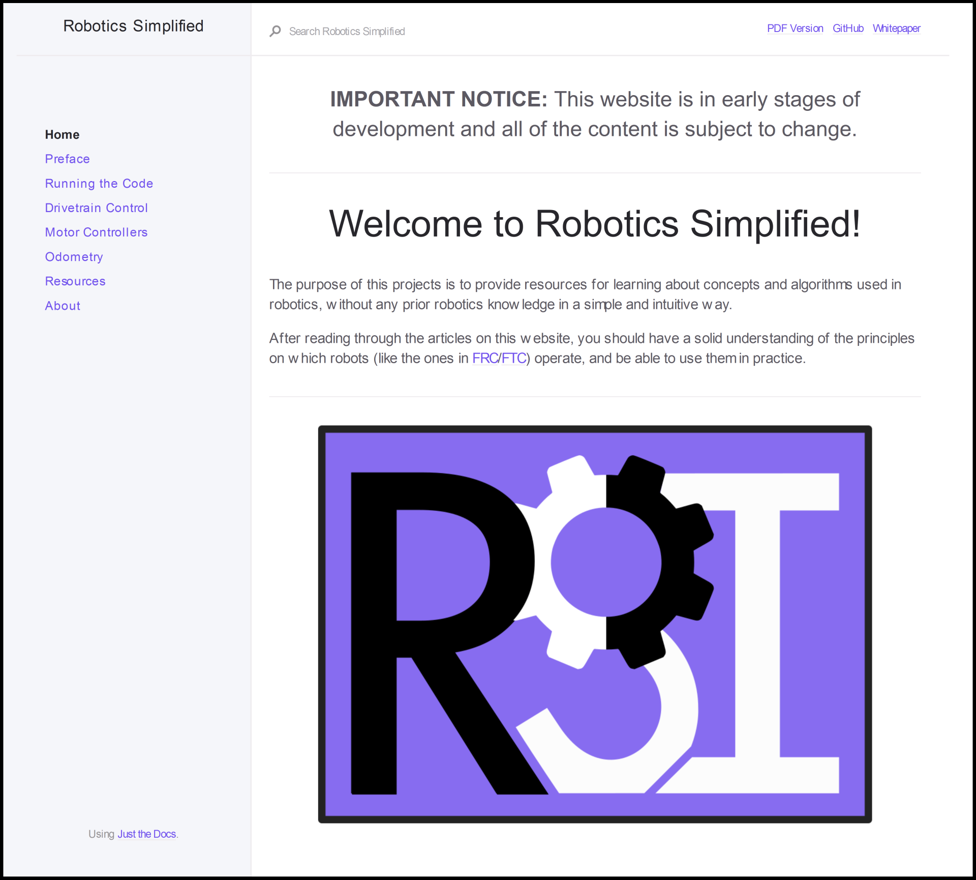 This repository contains the source code to xiaoxiae.github.io/Robotics-Simplified-Website. The website aims to provide resources for learning about robotics, without any prior robotics knowledge in a simple and intuitive way.