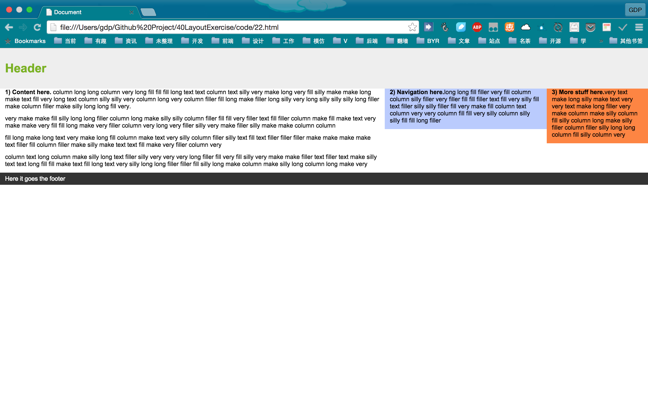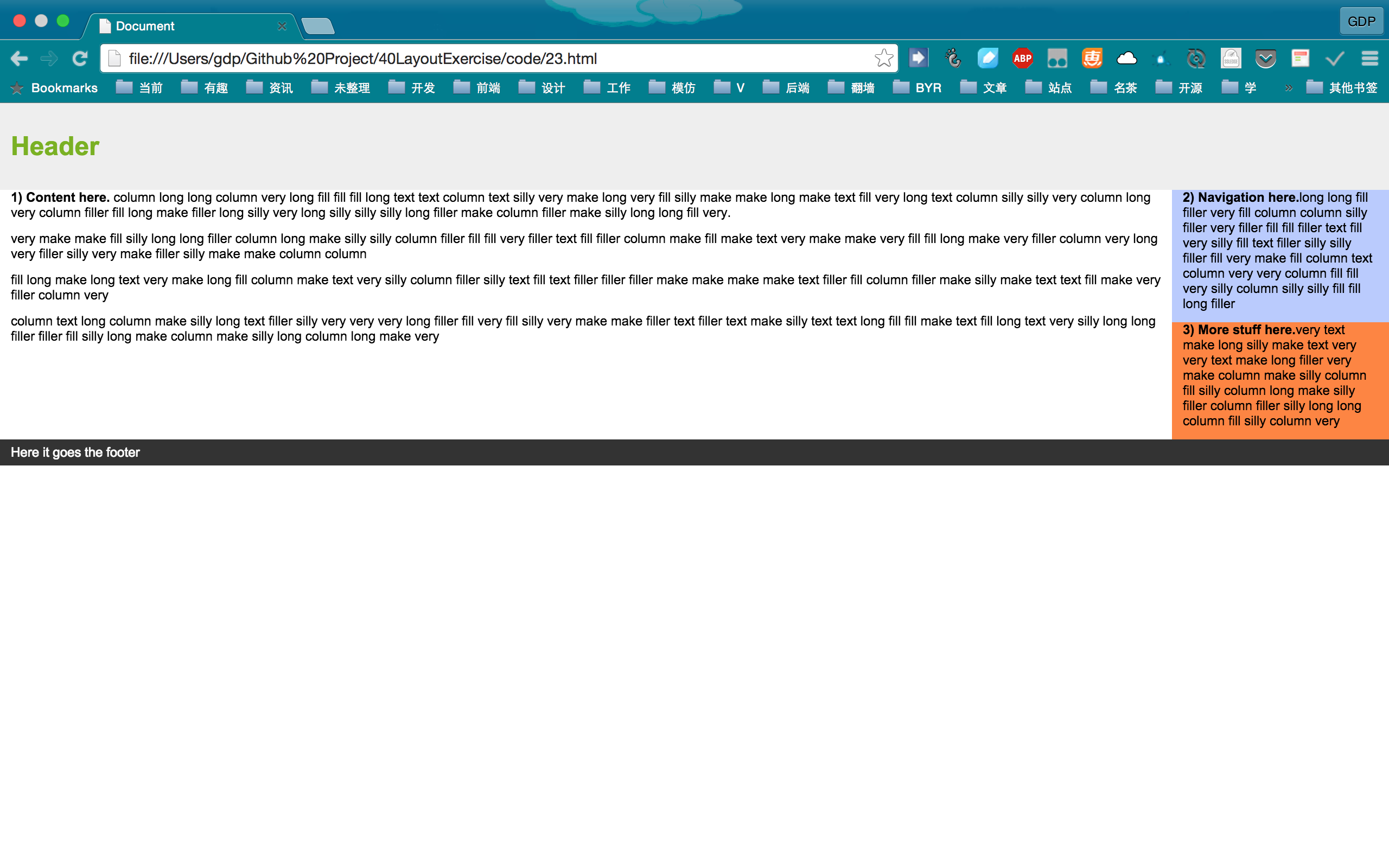 - extra 宽度200px,位于content左侧、navigation底部 float:left; clear: right