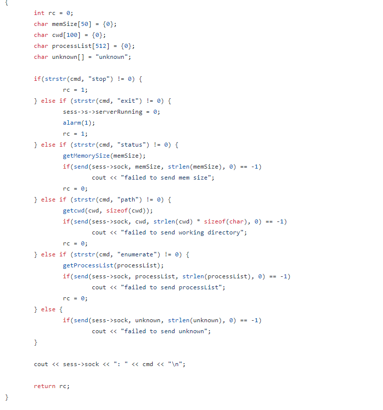 Comparing strings can be quite expensive, in a scenario where we might have many more commands, how can you optimize this further? Try seeing what data structures in C++ can help you increase lookup speeds instead of strstr for each command we might have.